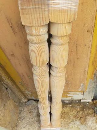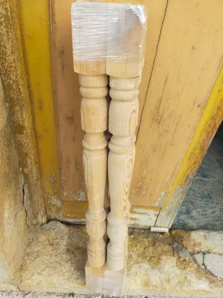 Se venden tres balaustres de madera maciza, listos para instalar. Son de color natural claro y parecen estar en buen estado. - Fabricados en madera robusta. - Diseño clásico y elegante. - Ideales para escaleras o barandillas.