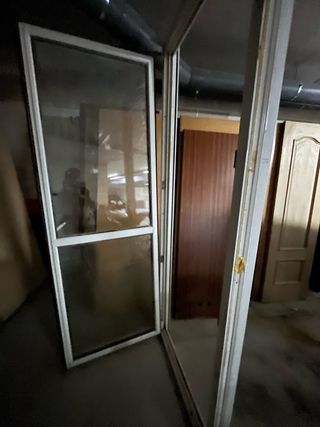 Puerta de aluminio con marco de cristal. la medida es 2.14 cm de largo por 84 cm de ancho - Marco de aluminio blanco. - Panel superior de cristal texturizado. - Panel inferior de cristal transparente.