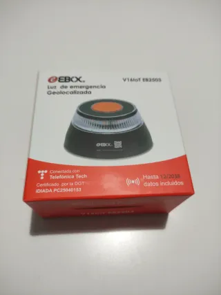 Luz de emergencia EBOX V16, modelo EB2507. Homologada y autorizada por la DGT. - Geolocalizada. - Conectada con Telefónica Tech. - LCOE 2023080717G1. - Datos incluidos hasta 01/2038.