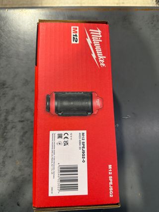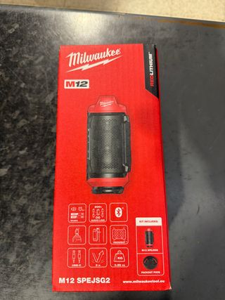 Altavoz Milwaukee M12 SPEJSG2. - Tecnología REDLITHIUM. - Conexión Bluetooth. - Puerto USB-C. - Incluye PACKOUT PUCK. - Peso: 0.86 kg.
