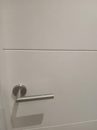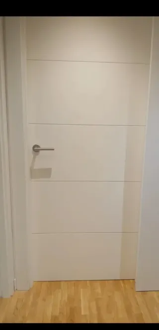 Puerta interior de diseño moderno en color blanco. - Diseño con líneas horizontales. - Acabado liso. - Incluye manilla plateada. - 82,5 x 203