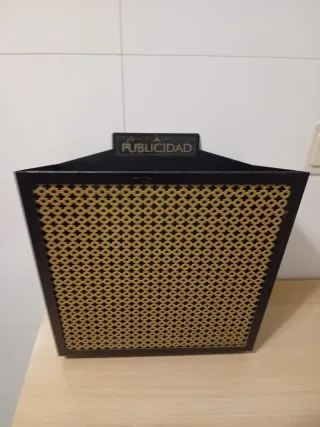 Buzón metálico con un diseño de rejilla tipo ratan Alto 35 ancho 32 fondo 19 cm - Color negro y dorado. - Ideal para colocar en entradas o recepciones.