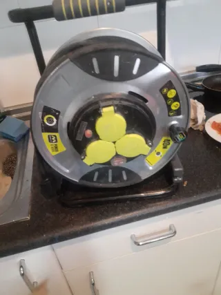 Alargador enrollable con tres enchufes y 40 metros de cable. - Enrollador de cable. - Tres enchufes. - 40 metros de longitud.en tienda vale 110 euros