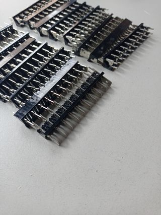 Lote de regletas para conexión eléctrica con terminales Faston de 6,4 mm. - Material: Plástico negro y metal. - Diseño de regleta con múltiples pines.