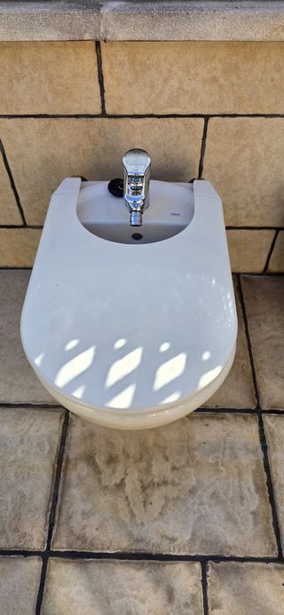 Bidet o bidé Roca, modelo Sidney de gama alta en estado impecable. Mejor ver. Se vende con tapa, latiguillos y kit de anclajes con sus tacos correspondientes. Si quieres la grifería también, el precio es 35€ con todo. Para recoger en Villaverde alto (Madrid)
