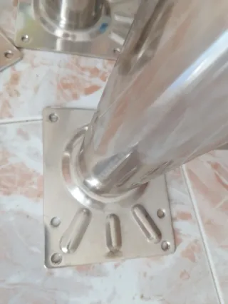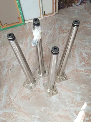 Juego de cuatro patas de acero inoxidable con base autonivelante. Perfectas para mesas o muebles que necesiten estabilidad en suelos irregulares. - Material: Acero inoxidable. - Diseño: Autonivelante. - Cantidad: 4 unidades.