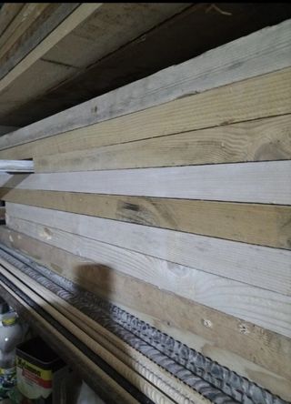 Listones de madera de 5x8 Los tengo en 2.50 de largo y 2.30 Dispongo de bastantes unidades,están rectos y sin clavos. Ideales para pérgolas,jardines, decoración,etc ...