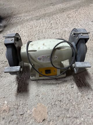 Amoladora doble con dos discos de lijado. - Base estable para un uso seguro. - Interruptor de encendido/apagado. - Cable de alimentación incluido. Medida: 42 cm ancho. Alto: 28 cm