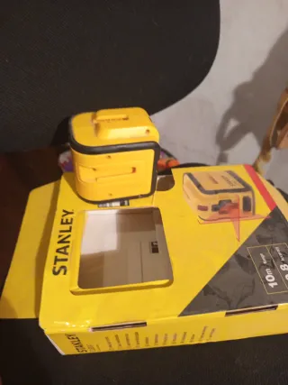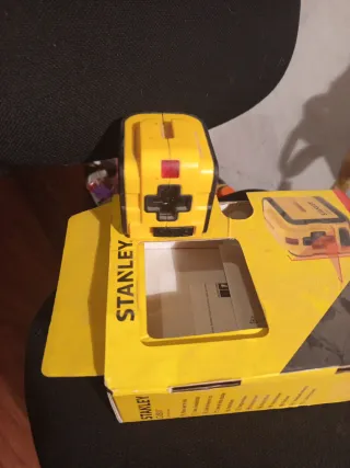 Nivel láser de la marca Stanley, ideal para trabajos de medición. - Color amarillo. - Diseño compacto.