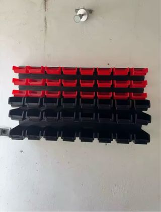 Vendo sistema de almacenamiento modular para organizar piezas pequeñas, tornillos, tuercas y otros elementos. NUEVO Y SIN USAR. - Bandejas rojas y negras. - Montaje en pared. - Diseño apilable. - 48 compartimentos Ideal para regalo Realizo envíos