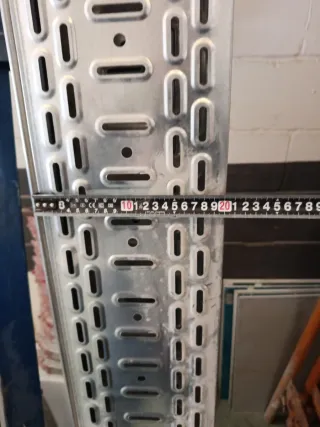 10 Bandeja de 3 metros lineales para instalación , ideal para organizar cables y conductos. Con 55 escuadra de soporte Se vende lote completo - Material: Metal - Diseño perforado para ventilación y fijación.
