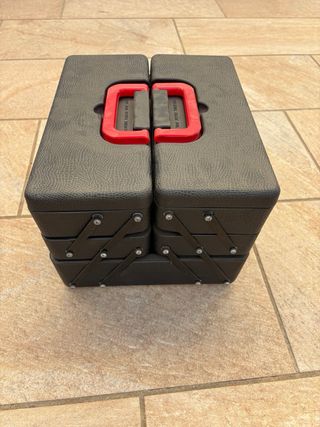 Caja de herramientas de plástico resistente con asa plegable. - Color negro con asa en rojo. - Diseño plegable.