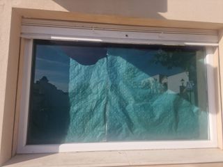 Escaparate de aluminio y cristal de seguridad. - Marco de aluminio resistente. - Panel de cristal seguro. Persiana de chapa galvanizada con cerradura. Se venden las dos cosas juntas.