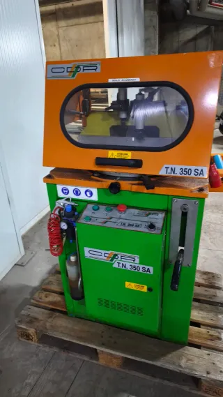 Sierra industrial CDR T.N. 350 SA para corte de aluminio. Diseñada para trabajos profesionales en talleres. - Construcción robusta para uso intensivo. - Sistema de sujeción de perfiles. - Panel de control con mandos intuitivos.