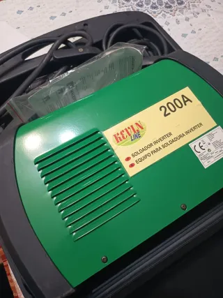 Soldador Inverter KEVLIN LINE modelo ARC-200. - Potencia de 200A. - Incluye porta-electrodos (cable 1.5m). - Incluye pinza de masa (cable 1.5m).