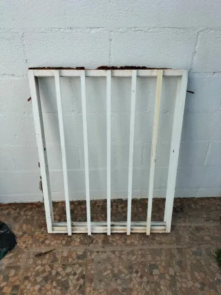 Rejilla de aluminio para ventana. Ideal para protección o decoración. Medidas 76cm ancho 96 alto - Material: Aluminio - Color: Blanco - Diseño: Barras verticales