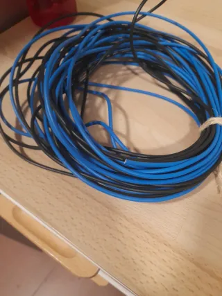 Rollo de cable eléctrico de 2,5 mm de grosor, con aislamiento en color azul y negro. Libre de halogenos. Cada color tiene 10,5 mts. - Cableado de cobre. - Aislamiento de PVC.