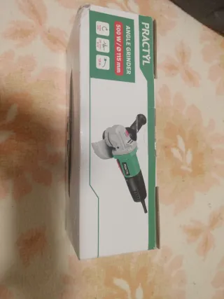 Amoladora angular de la marca Practyl. - Potencia: 500 W - Diámetro del disco: 115 mm - Velocidad: 12.000 RPM - Voltaje: 220-240V - Frecuencia: 50 Hz - Longitud del cable: 1,8 m