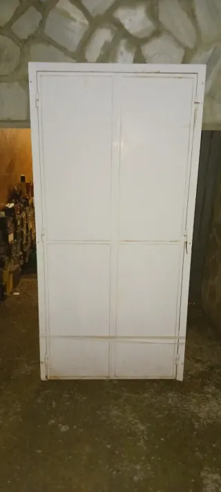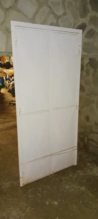 Puerta de hierro de doble hoja. Medidas alto de puerta sin batidor 2.05 con batidor 2.10 Y ancho 92 con batido100 - Material: Hierro. - Color: Blanco.
