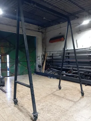Pórtico de acero resistente, ideal para talleres o almacenes. Su diseño permite el desplazamiento gracias a sus ruedas. - Estructura de acero. - Base con ruedas para movilidad.