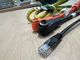 Conjunto de cables para conexión de baterías Pylontech de litio. Incluye cables de alimentación y de red. - Cable de red Ethernet. - Cable de conexión de batería (negro). - Cable de conexión de batería (naranja). - Cables de tierra (verde/amarillo).