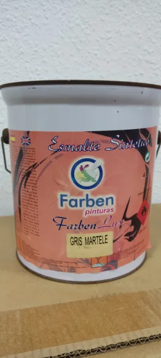 5 botes de 4 ltrs de pintura esmalte sintético con acabado martelé. - Color: Gris Martele. - Marca: Farben. - Tipo: Esmalte Sintético.