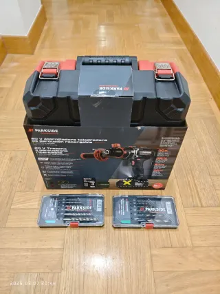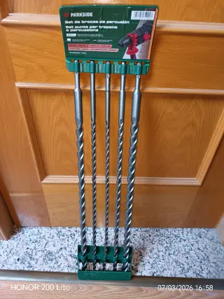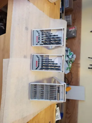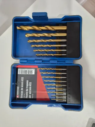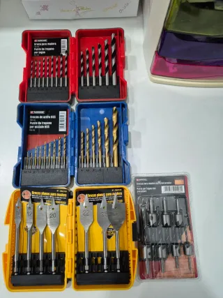 Conjunto de brocas para taladro de la marca Parkside, ideales para madera y metal. - Set de brocas para madera. ( 8€ ) - Set de brocas HSS para metal. ( 10€ ) - Brocas planas para madera. ( 9€ ) - Brocas avellanadoras para madera. ( 8€ )