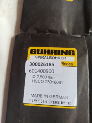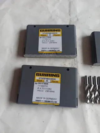 Brocas Hss marca Wurth,de 3'2 milímetros y 3'5 milímetros.Van en cajas de 10 unidades.Cada caja a 8 euros.