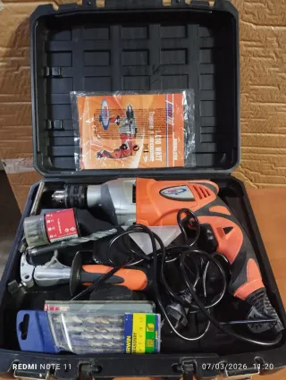 Se vende taladro eléctrico con brocas - Taladro con cable de alimentación. - Caja de brocas de diferentes tamaños. - Broca de pala. - Corona de corte.
