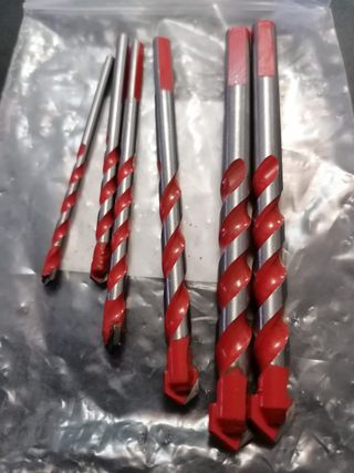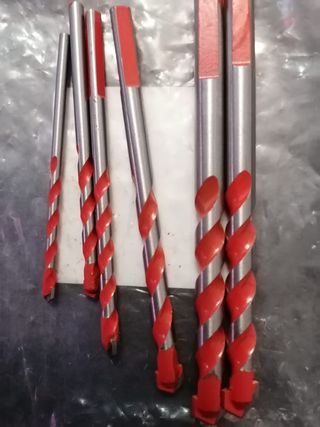 Set de 6 brocas para cemento con punta de carburo. Brocas de metal con espiral roja. Punta de carburo para mayor durabilidad. - Variedad de tamaños.
