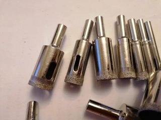 Set de brocas de diamante para corte. - Incluye brocas de 6, 8, 10, 12, 14 mm. - Incluye brocas de 20, 25, 28, 32, 35, 38 mm. - Diseño con borde de diamante para mayor durabilidad. - Se presenta en un maletín organizador.