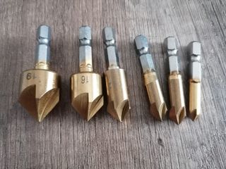 Set de 6 brocas avellanadoras de latón. Son ideales para crear agujeros avellanados en madera o metal. Incluye 6 tamaños diferentes. - Vástago hexagonal para un agarre seguro.