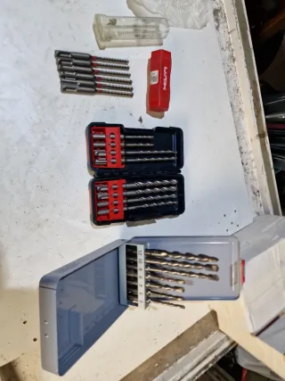 Se venden tres estuches de brocas SDS, compatibles con marcas Bosch y Hilti. HERRAMIENTA NUEVA DE CIERRE DE FERRETERÍA SE VENDEN LOS 3 ESTUCHES JUNTOS - Incluye brocas de diferentes tamaños. - Estuches de plástico y metal para su almacenamiento.