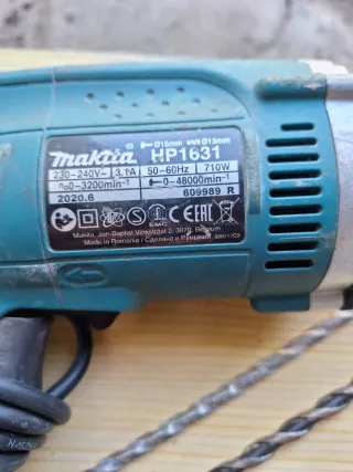 Taladro percutor Makita HP1631 en color azul y negro. Incluye dos brocas para taladro. - Modelo: HP1631 - Marca: Makita - Color: Azul y negro - Incluye: 2 brocas