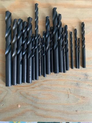 Se vende lote de brocas para metal. Son de acero y tienen la punta pintada de verde. 22 brocas 2 medidas 1610 ×1300 - Brocas de metal. - Punta pintada de verde.