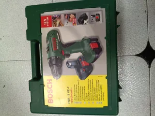 Taladro percutor Bosch PSR 12 VE-2. - Sistema 12V. - Incluye maletín. - Incluye 1 baterías. - Incluye cargador. - Incluye estuche multifuncio de brocas,puntas y linterna led.