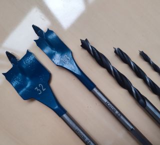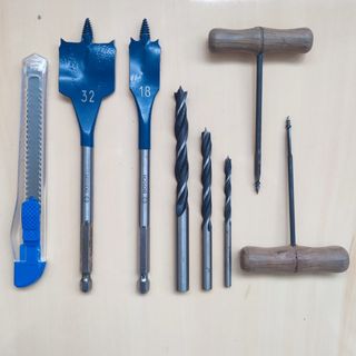 Accesorios para trabajos en Madera Material nuevo 1 Cutter 9" 3 Brocas helicoidales 4-6-8 2 Brocas de pala BOSCH 18-32 2 Barrenas 3'5-4'5