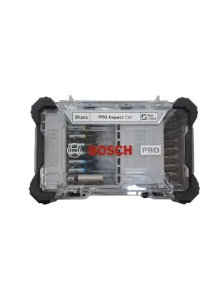 Set de brocas y puntas Bosch PRO Impact de 36 piezas. - Incluye 36 piezas. - Diseño compacto y resistente. - Sistema Pick & Click para una organización segura.