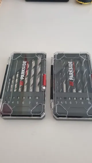 Set de brocas Parkside Performance. Son nuevas sin estrenar.El precio es por las 2.Se venden junto o por separado. - Incluye brocas de diferentes tamaños. - Estuche de plástico transparente para guardarlas.