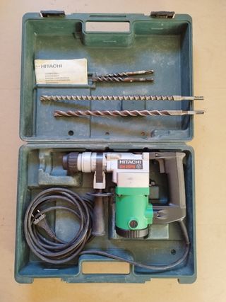 Martillo compresor rotativo Hitachi en su maletín. Va de maravilla puede probarse sin compromiso - Incluye broca helicoidal. - Maletín metálico verde.