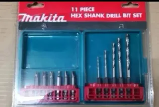 No negociable! Set de 11 accesorios Makita. Nuevo, sin uso. En blister plastico sin abrir. Tanto las brocas como las puntas llevan base de inserción exagonal. 6 brocas de metal - madera de 2, 3, 4, 5 y 6 mm 5 puntas de 50mm : philips nº 1, 2 y 3. planas nº 3, 5 y 6 mm Dispongo de varias unidades, precio x unidad. El plastico del embalaje puede estar amarillo, pero el set (estuche, puntas y brocas) esta perfecto. Hago envios x wallapop o entego en mano, más cosas en mi perfil.