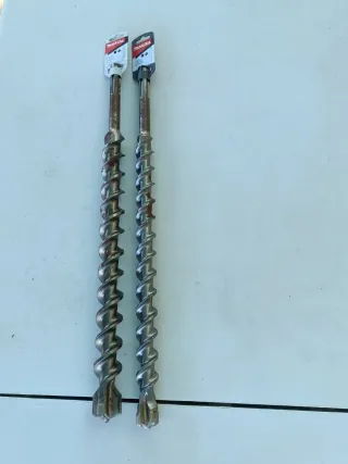 Se venden dos brocas para taladro percutor de la marca Makita. - Broca de 40 mm de diámetro, 570 mm de longitud total y 450 mm de largo útil (P-78162). - Broca de 32 mm de diámetro, 570 mm de longitud total y 450 mm de largo útil (P-78047).