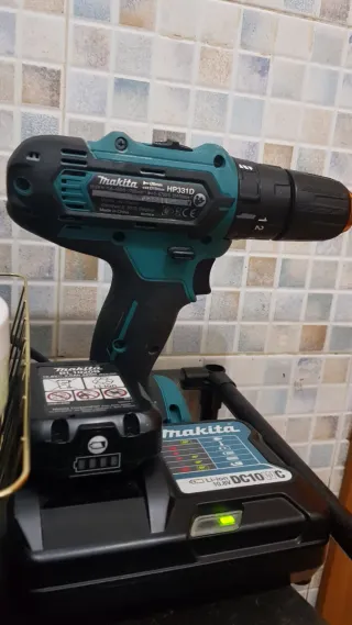 Taladro inalámbrico Makita HP331D con 2 batería y cargador de bateria - Modelo de taladro:HP3331D - Voltaje de la batería: 10.8V - Capacidad de la batería: 2.0Ah - Modelo del cargador: DC10WC - Tipo de batería: Li-ion Más un maletín completo con brocas . Taladradora+cargador de bateria+2 baterias+caja completa de brocas 100€ todo junto Como nuevo poco uso.