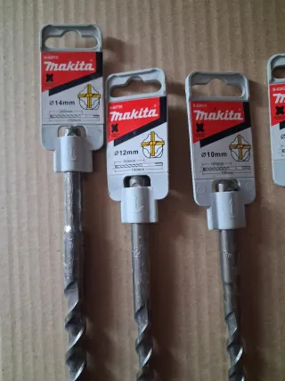 Set de 4 brocas Makita para percutor. Hago lotes según el cliente - Broca de 14mm, largo 290mm. - Broca de 12mm, largo 160mm. - Broca de 10mm, largo 160mm. - Broca de 8mm, largo 215mm.