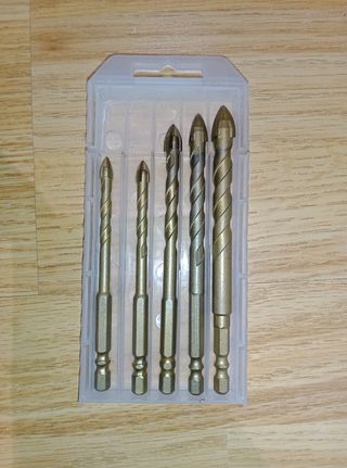 Set de 5 brocas diseñadas para perforar materiales duros como azulejos, porcelana y pavimento. - Punta afilada para un inicio preciso. - Diseño helicoidal para una eficiente evacuación del material. - Vástago robusto para un agarre seguro en el taladro.