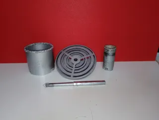 Broca para agugerear azulejo, ceramica y porcelanico, de 6 cm., para utilizar con maquina de taladrar.+ broca para ceramica (pared) de 6 cm. diametro para colocacion rejillas para respiraderos + broca de 3 cm. de diamante para marmol, ceramica y granito. Todo el lote por 40 €