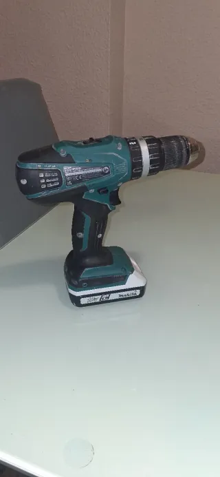 Taladro percutor inalámbrico de la marca Makita. Ideal para trabajos de bricolaje y profesionales. - Modelo: [Modelo específico si se conoce] - Voltaje de la batería: 18V - Incluye batería y cargador. -kit de puntas de toda clase de tornillos -varias brocas de diamante pequeñas -corona de diamante de 25 mm