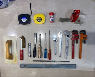 Vendo lote completo de 18 herramientas en buen estado, ideal para obra, reformas, bricolaje o fontanería 🏠🔧 Todo funciona correctamente, herramientas robustas y listas para usar 💪🧰 Incluye: • Llana/fratacho con mango de madera 🧱 • Cepillo de alambre 🪛 • 2 destornilladores planos 🔩 • Nivel de burbuja largo 📏 • 2 metros de 30 m 📐 • Broca para granito/hormigón 14 × 400 mm 🧱⚙️ • Fijador de roscas Loctite 🧴 • 2 formones de carpintero 🪚 • 3 llaves ajustables (pequeña, mediana y grande) 🔧🔧🔧 • Llave fija doble 🔩 • Llave de tubo doble 🔧 • Cortador de cinta de embalar 📦✂️