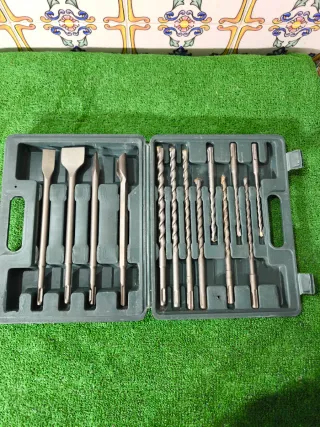 Vendo juego completo de brocas y cinceles SDS para martillo percutor, presentado en estuche de madera con interior protector. 🔹 Contenido: • Varias brocas SDS de distintos diámetros y longitudes • Cincel plano • Cincel tipo pala • Todo bien encajado y protegido 🔹 Estado: Buen estado general. Brocas robustas, ideales para hormigón, piedra y mampostería. Estuche original incluido. 🔹 Ideal para: Profesionales de la construcción, reformas, albañilería o manitas exigentes que no quieren brocas de “usar y tirar”.