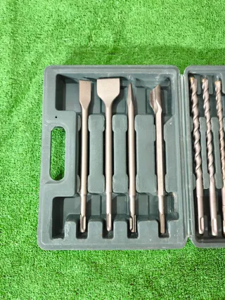 Este set incluye brocas y puntas SDS plus, esenciales para trabajos de percusión y taladrado. - Brocas de diferentes tamaños para hormigón y mampostería. - Puntas cincel planas y de pala para demolición y desbaste.